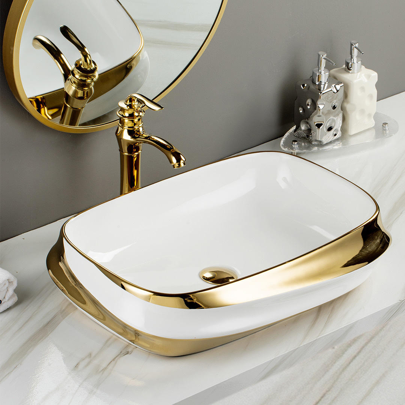 Luxury Golden Art Ceramic Basin Wash Basin Modern Oval Table