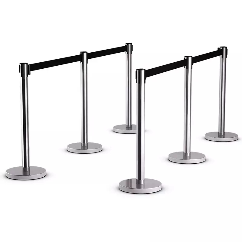 A combination of pillars and connectors (such as retractable straps, chains, and glass barriers) creates a flexible "temporary isolation boundary." These can be used independently (e.g., marking "No Entry" zones) or connected in series to form continuous corridors (e.g., guiding queues, dividing banquet seating areas and aisles). Their core function is to manage space in an orderly manner while avoiding the rigidity of physical isolation.