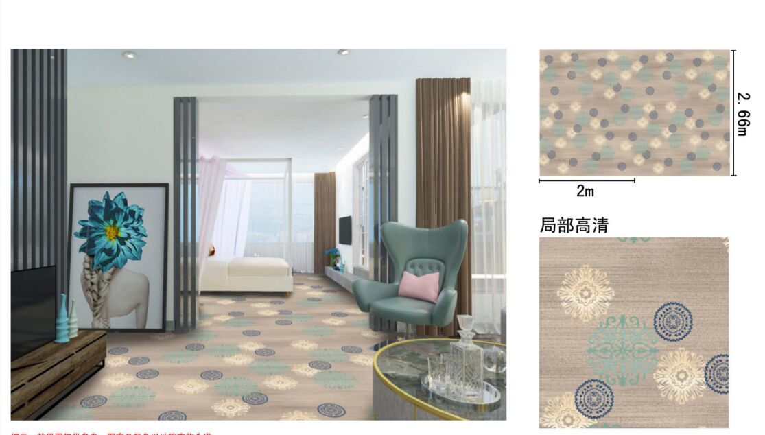 The Ben Rui hotel carpet is produced in Qingyuan, China.